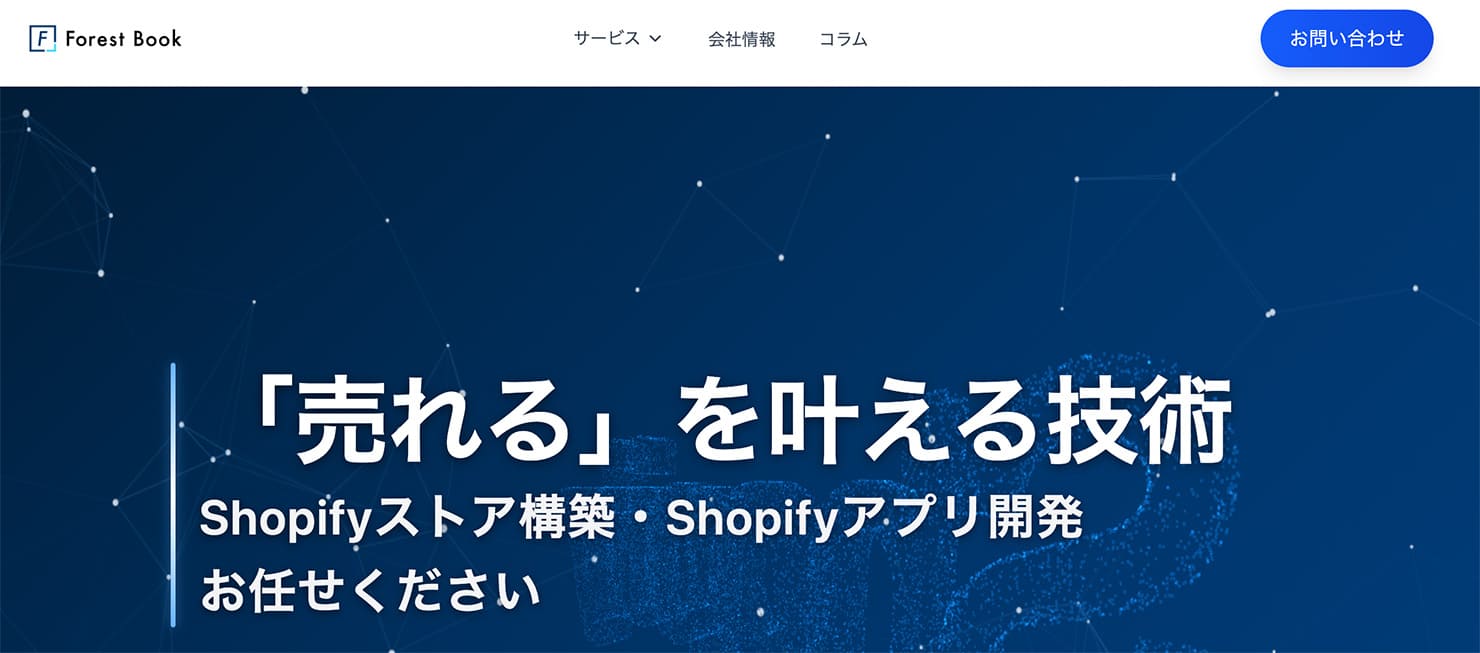 Shopifyのストア構築とカスタムアプリ開発に強い開発会社。業務効率化のための機能追加や、要件に合わせた実装で“運用しやすいEC”を作りたい企業向き。
