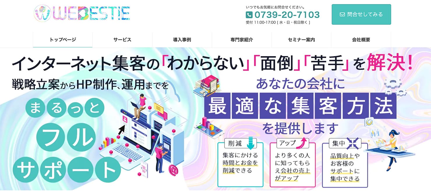 田辺市拠点の“集客込み”Web支援会社。サイト制作だけでなく、運用やマーケ視点での改善を前提にした提案が特徴。地域ビジネスのWeb集客をまとめて任せたい事業者向き。