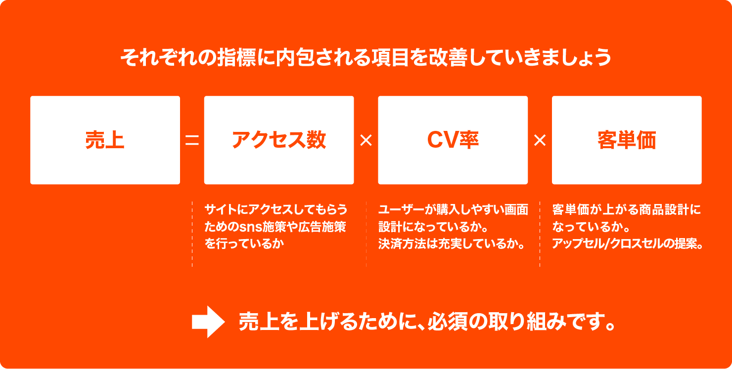 ECサイトの売上を上げるためにはどのポイントを改善すべきかを見つけることが大切です。