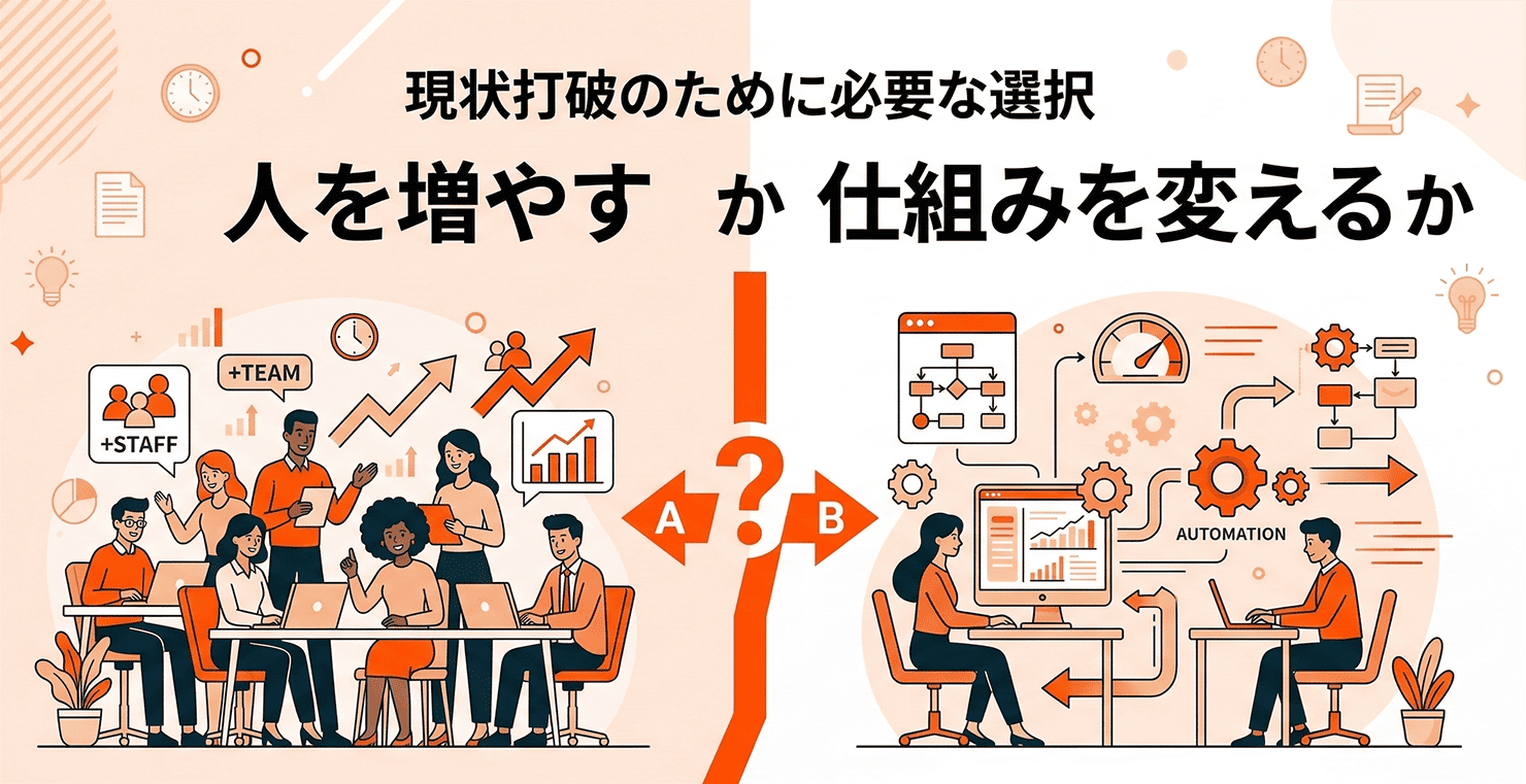 この悪循環を断ち切るためには、「人を増やす」か「仕組みを変える」かのどちらかが必要です。