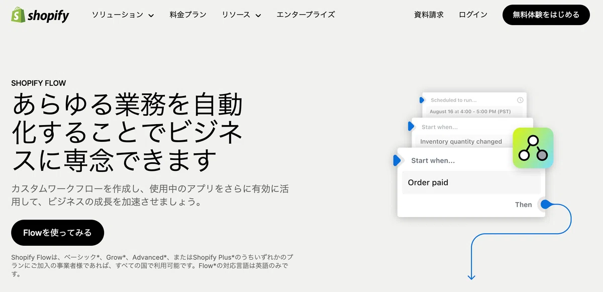 そこで、今回はShopifyの機能である「Shopify Flow」を活用して半自動化する方法をご紹介いたします。