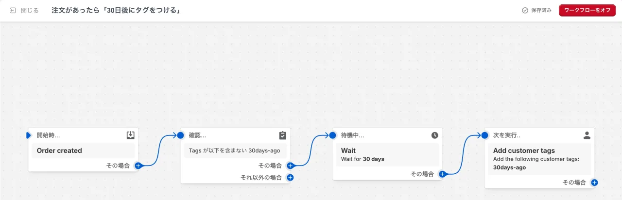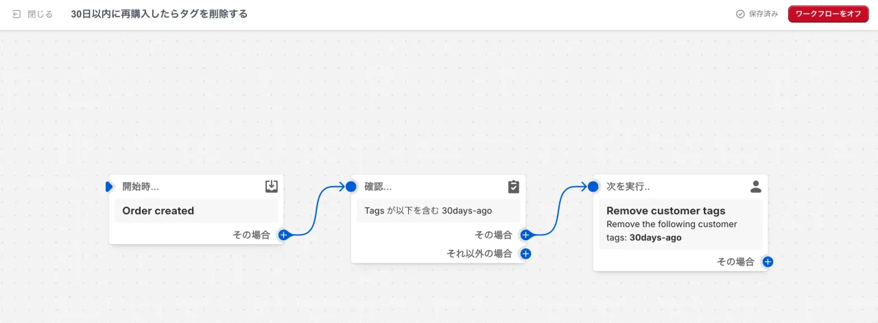 最後にメールを送信後に注文があった場合にその顧客のタグから「30days-ago」を削除しましょう。